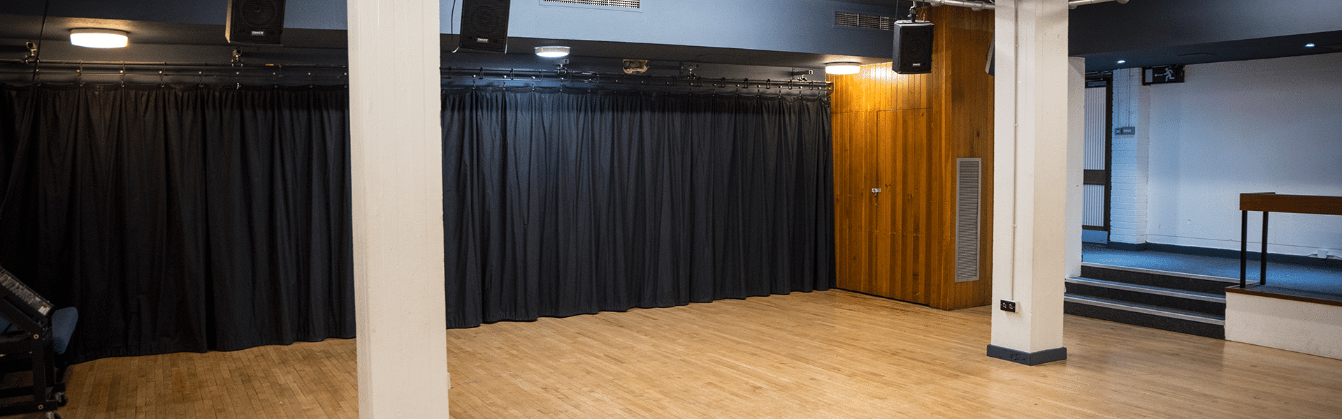 Studio 2 is a multi-purpose space with wheelchair lift, wooden floor, mirrored wall, sound system and colour changing lights.