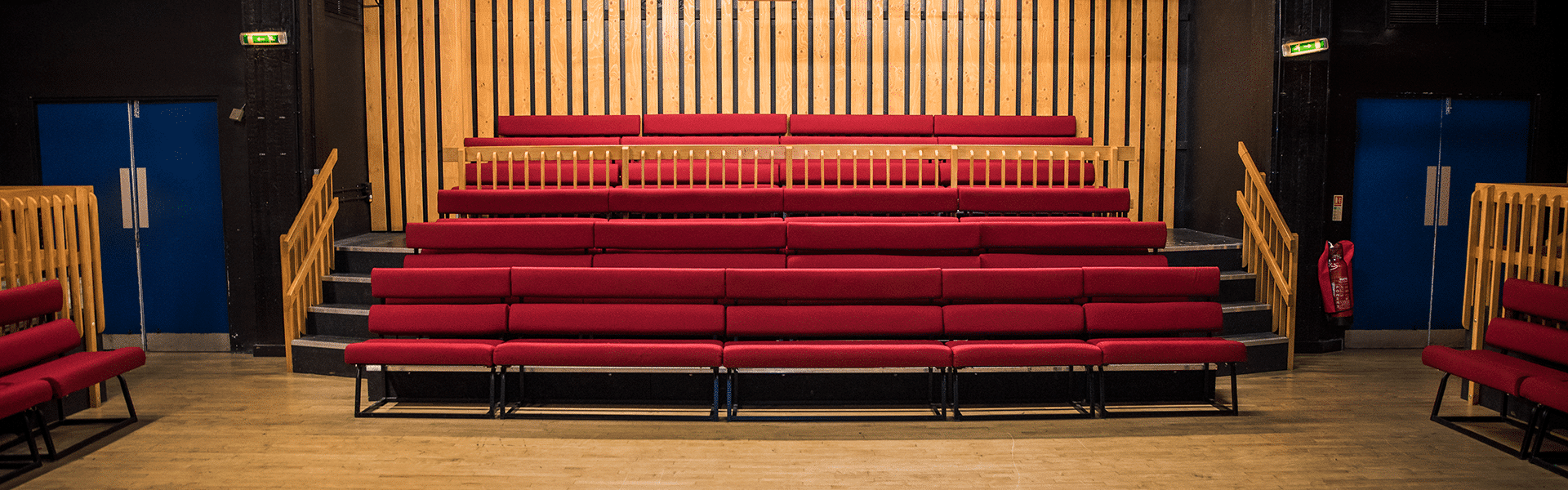 A popular 120-seat thrust theatre, with large sprung floor and three surrounding seating banks.